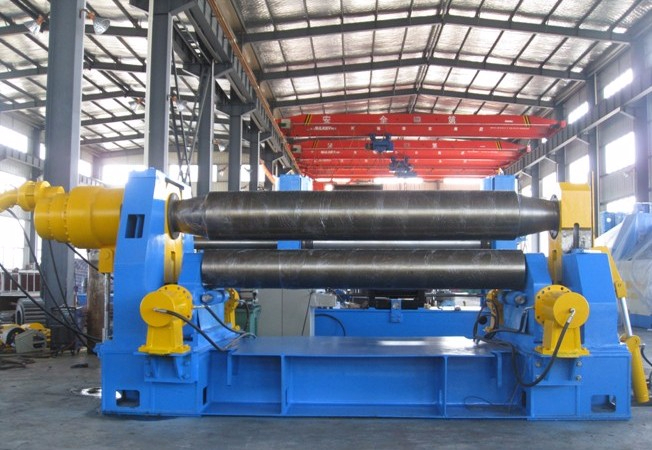 卷板机是一种利用工作辊使板料弯曲成形的设备,是一种重要的加工设备。卷板机在工作时,通过液压力、机械力等外力的作用,使工作辊运动,从而使板材压弯或卷弯成形。根据不同形状的工作辊的旋转运动以及位置变化,可以加工出椭圆形件、弧形件、筒形件等零件。 三辊卷板机一般可以分为几种